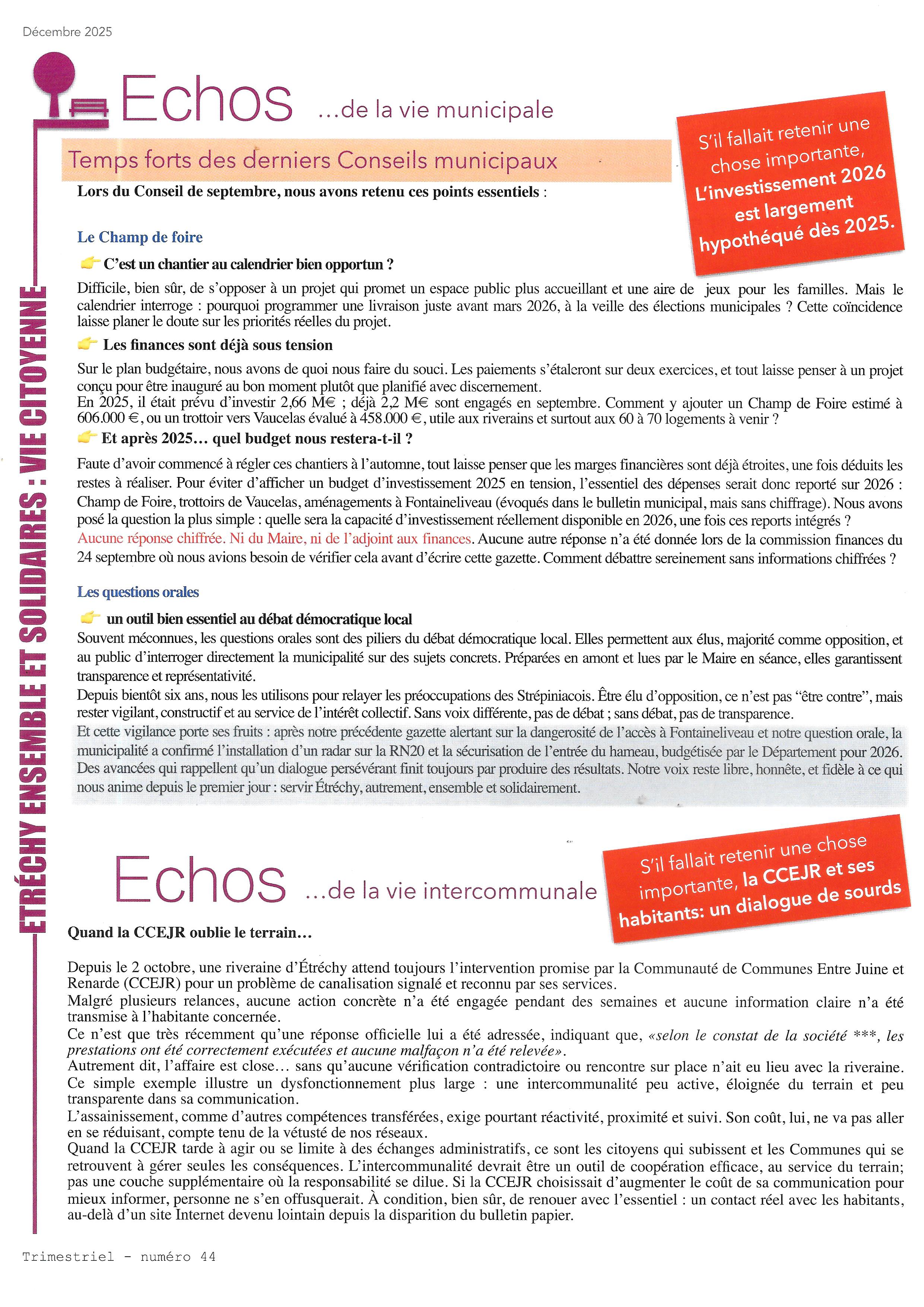 à Etréchy» n° 146 de janvier 2023 : "Notre